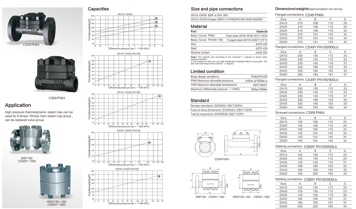 進口高壓熱動力式疏水閥利用蒸汽和凝結水通過閥孔時流速和體積產生變化的不通熱力學性質,驅動閥片開關閥座孔,從而達到阻汽排水。根據伯努力熱動力原理,利用蒸汽和凝結水的熱動力學不同的特性,引起動能和勢能動靜壓變化,使動作閥片上下壓差變化,氣動閥片開啟和關閉,從而達到阻汽排水的目的。常見安裝于蒸汽用戶的各種高、中、低壓蒸汽管網或伴熱工況。