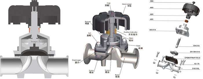 衛生級隔膜閥符合格式國際標準設計,滿足各種配置需求,每個閥門串行標識,閥體表面高潔凈平滑、無死角流道設計、自排凈安裝角度,易于拆卸、維護和清潔。
