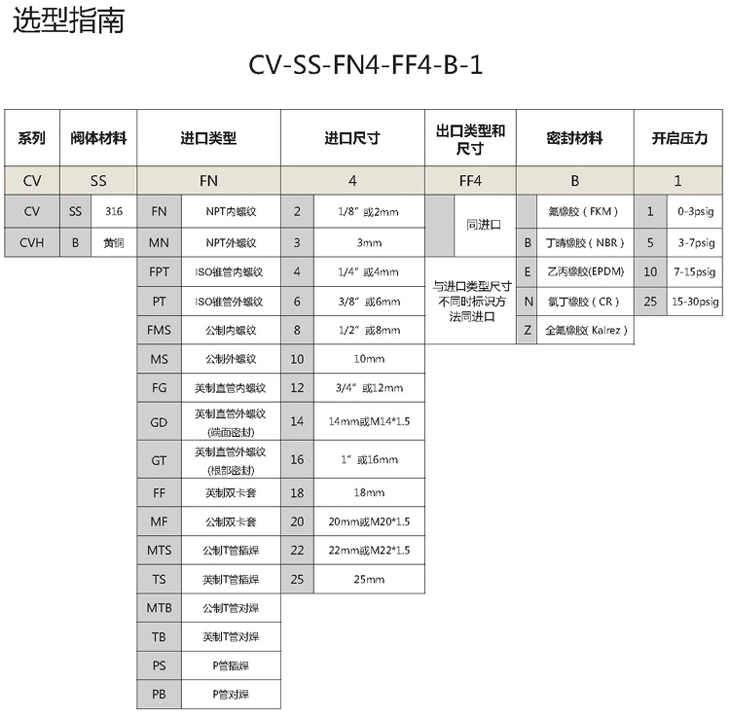 LIKCVH 系列![]() ■ 浮動密封圈,阻止污染物影響密封 ■ 最大工作壓力:6000psig(413bar) ■ 工作溫度:-23°C至204°C (- 10°F至400°F) ■ 開啟壓力:1psig、5psig、10psig、15psig可供選擇 ■ 閥體材料:316不銹鋼,其他材料請與MasterLok公司聯系 ■ 接口: 1/8”至 1”,3mm至25mm雙卡套 1/8”至 1”螺紋 1/4”至 1”6mm至25mm焊接 |