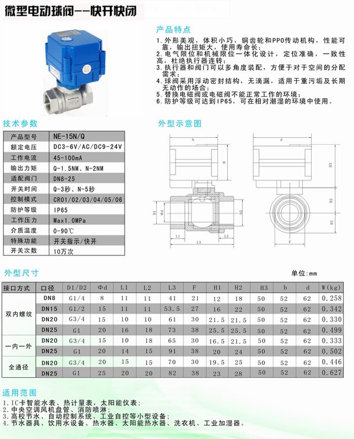 進(jìn)口微型電動(dòng)球閥 產(chǎn)品特點(diǎn)