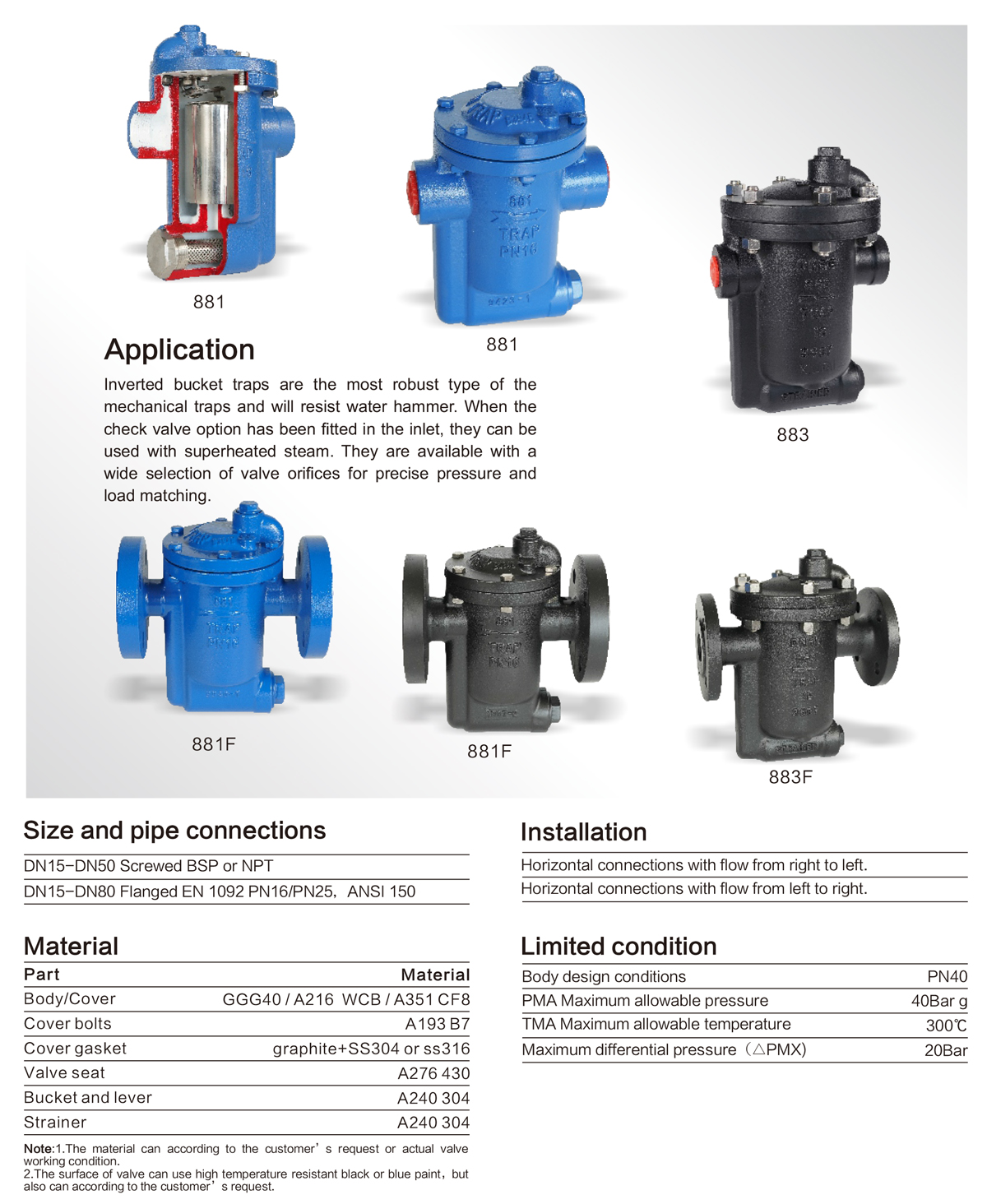 進(jìn)口進(jìn)口法蘭疏水閥的開啟和關(guān)閉是根據(jù)凝結(jié)水和蒸汽的密度并來動作的,工作動作準(zhǔn)確,可靠。其性能特點(diǎn)為:能夠連續(xù)又能間歇排放飽和凝結(jié)水加熱設(shè)備不會有水積聚,從而獲得高的熱效率;耐水擊倒置桶結(jié)構(gòu)不會因水擊而遭到損壞,使用壽命長;排空氣性能好倒吊桶上設(shè)有溢出排氣孔,可有效地預(yù)防蒸汽氣鎖和空氣氣堵;允許背壓率達(dá)85%;維修方便內(nèi)部零件采用不銹鋼制造,均安裝在閥蓋上,并設(shè)有過濾網(wǎng)裝置,日常維護(hù)方便。廣泛用于石油、化工、電力、印染紡織、醫(yī)療、醫(yī)藥等行業(yè)的各種蒸汽加熱設(shè)備、蒸汽管網(wǎng)和低過熱蒸汽工況。能夠迅速排除凝結(jié)水,有效地組織蒸汽泄漏。
