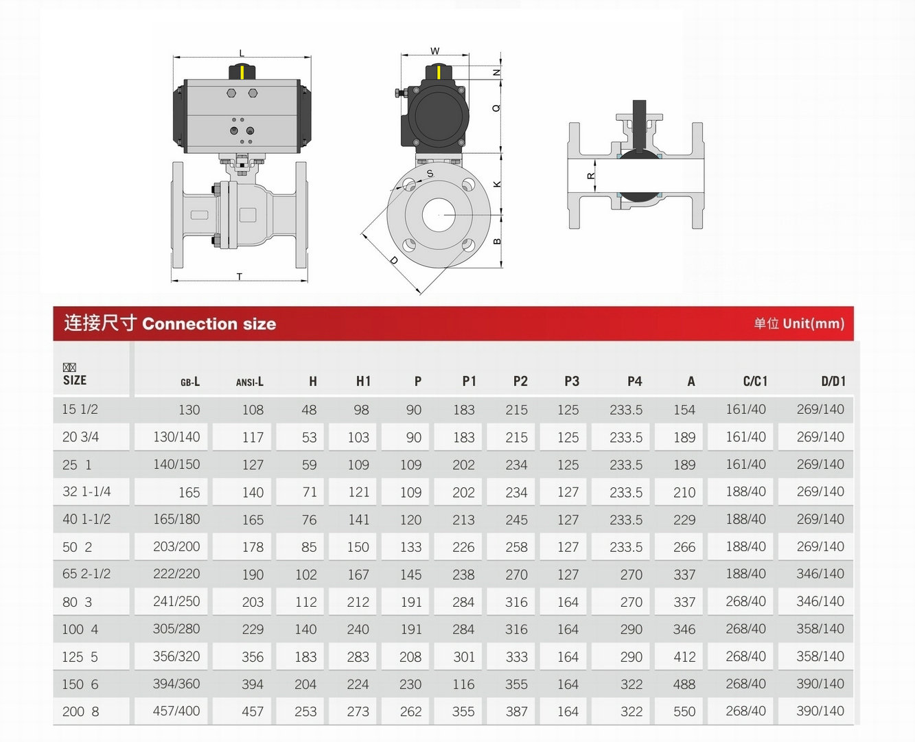 1,根據(jù)工況需要氣動法蘭式球閥可分為軟密封(-30~180℃)和硬密封(-40~450℃)兩種密封結(jié)構(gòu),以便在不同介質(zhì)、不同溫度及不同壓力的場所中合理使用。
