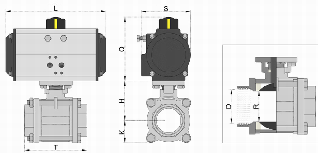 進口氣動不銹鋼三片式球閥是一種直角回轉結構的控制閥,由活塞式氣動執行器和三片式球閥組成,輸入0.4~0.7MPa氣源即可控制啟閉,氣動執行器的執行速度快,并可遠程控制。