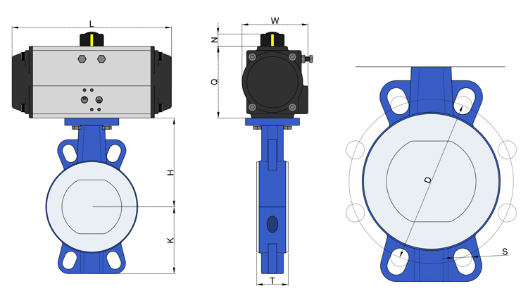 氣動執(zhí)行器通過壓縮空氣提供動力,驅(qū)動閥桿帶動閥板進行精確的旋轉運動,從而實現(xiàn)對介質(zhì)流量的有效控制。該蝶閥整體結構緊湊、外觀精美,操作靈活便捷,在各種工況下均能穩(wěn)定可靠地運行。