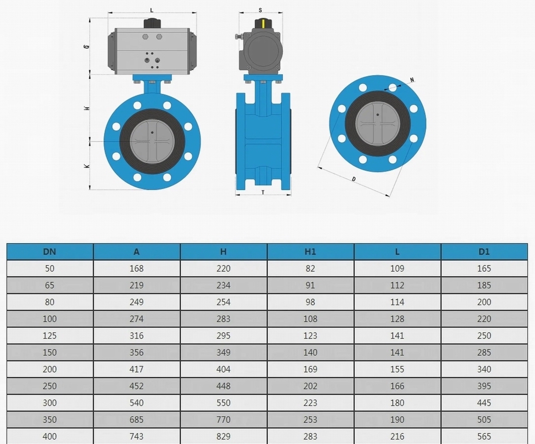 進(jìn)口氣動(dòng)中線法蘭蝶閥技術(shù)參數(shù):