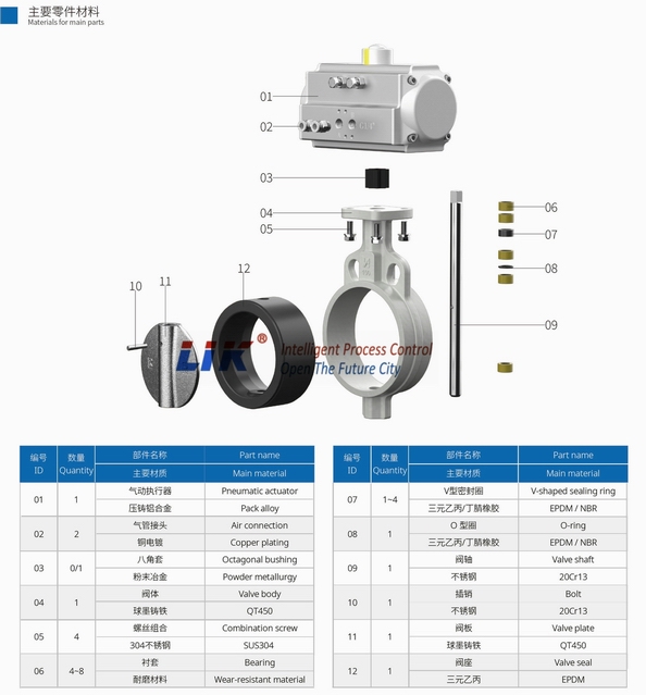進口氣動調節切斷蝶閥主要由以下幾個部分組成: